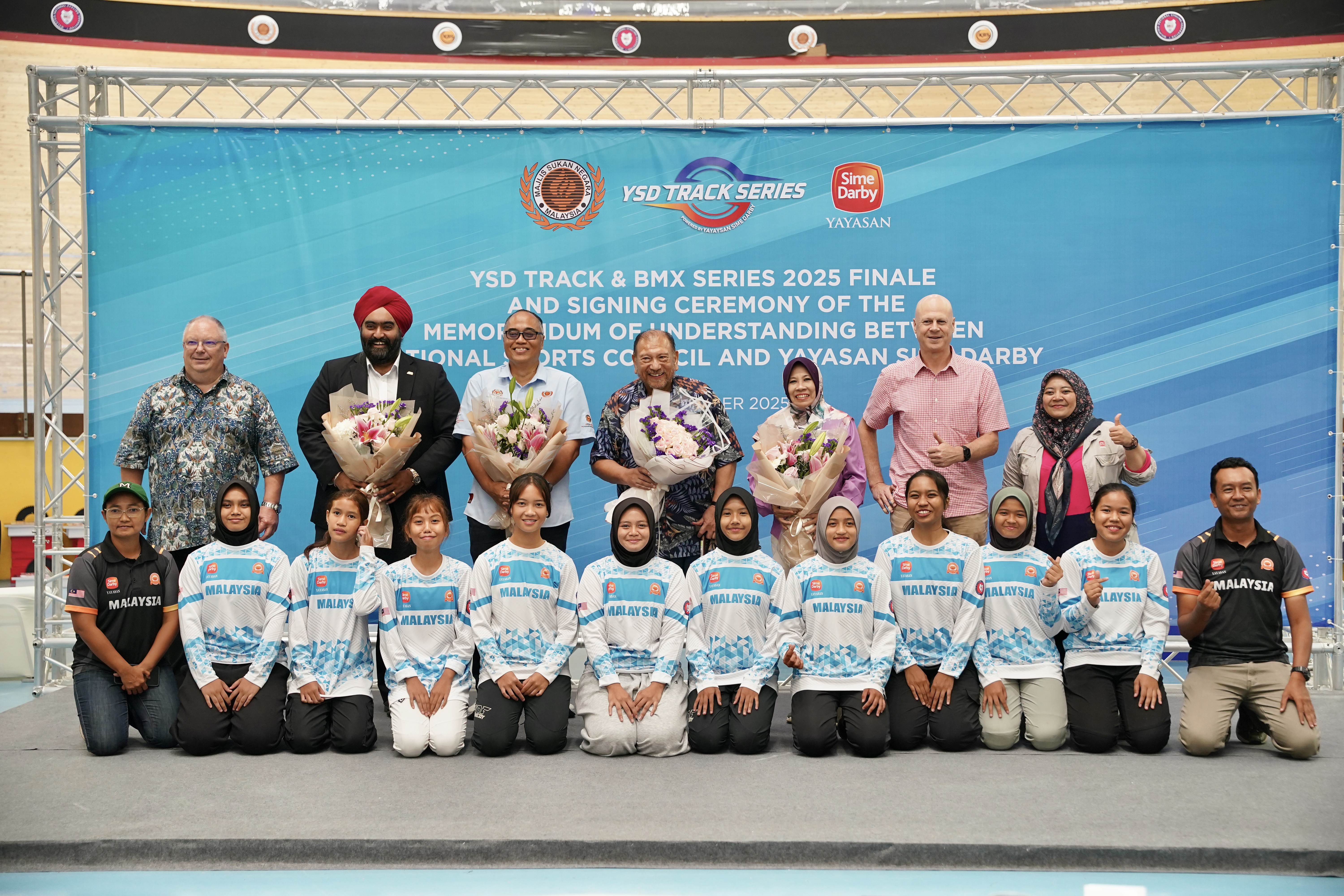 The announcement was made in conjunction with the Yayasan Sime Darby Track and BMX Series 2025 Finale at the National Velodrome in Nilai, which also witnessed the signing of a Memorandum of Understanding (MoU) between YSD and the National Sports Council (MSN). The MoU was signed by YSD Chief Executive Officer, Yang Berusaha Dr Hajah Yatela Zainal Abidin, and MSN Director-General, Yang Berusaha Encik Jefri bin Ngadirin, and witnessed by YSD Chairman, Yang Amat Mulia Tunku Tan Sri Imran Ibni Almarhum Tuanku Ja’afar. The MoU formalises a strategic collaboration between the private and public sectors to provide a safe and competitive race platform that supports more sustainable and holistic development of young cycling talent.